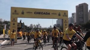 Milhares de ciclistas ocupam as ruas do centro histórico de São Paulo no passeio da virada 24 de setembro de 2025