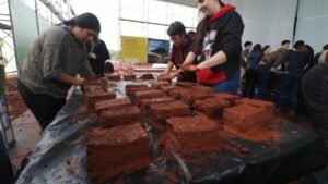 Estudantes de arquitetura e urbanismo de Foz do Iguaçu participam de oficina de confecção de tijolos onde será construído o Museu Pompidou 15 de setembro de 2025